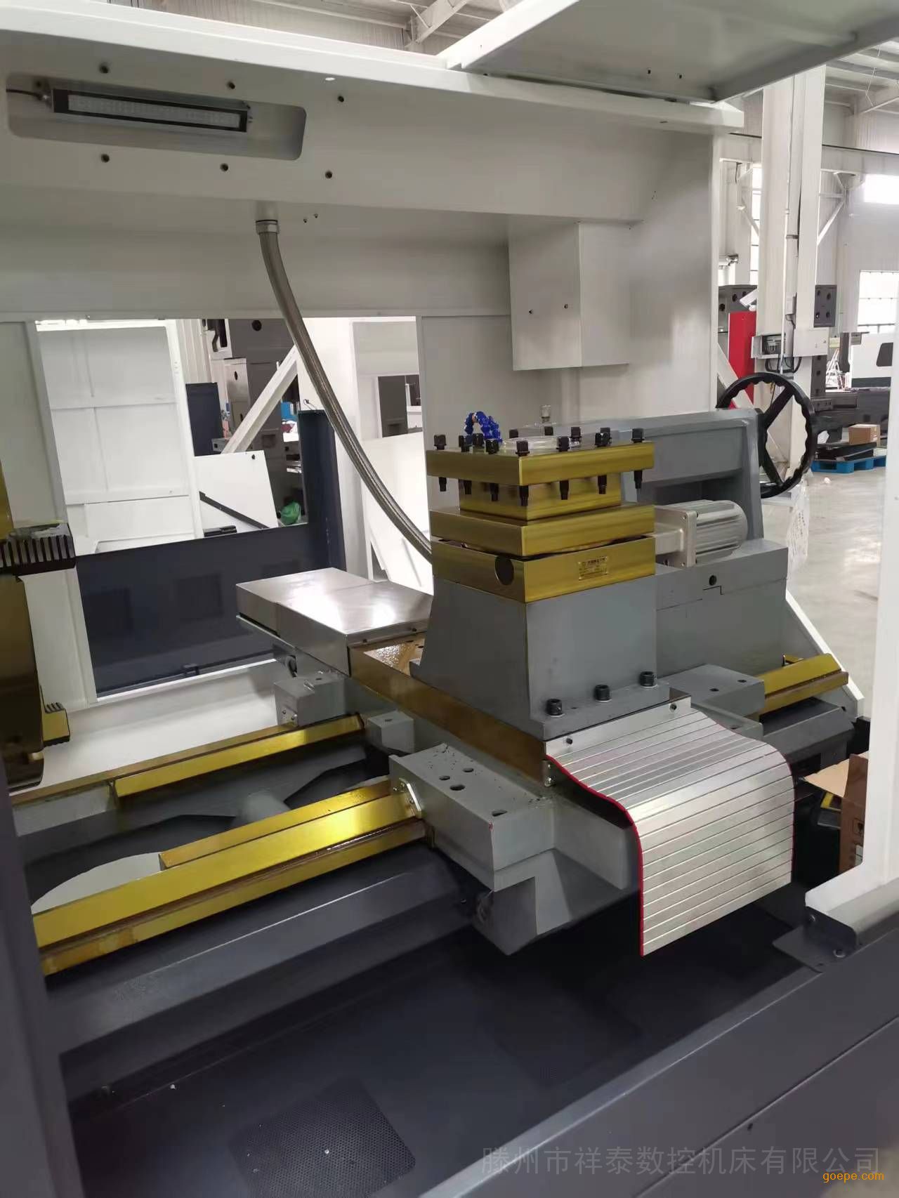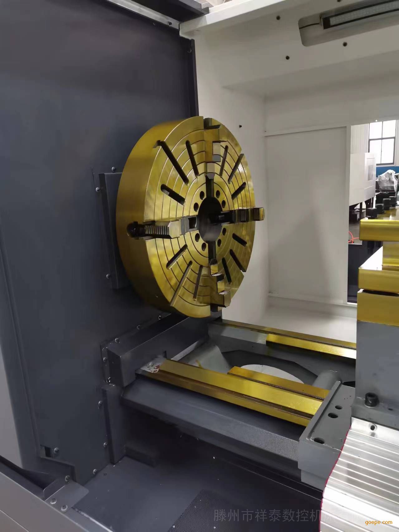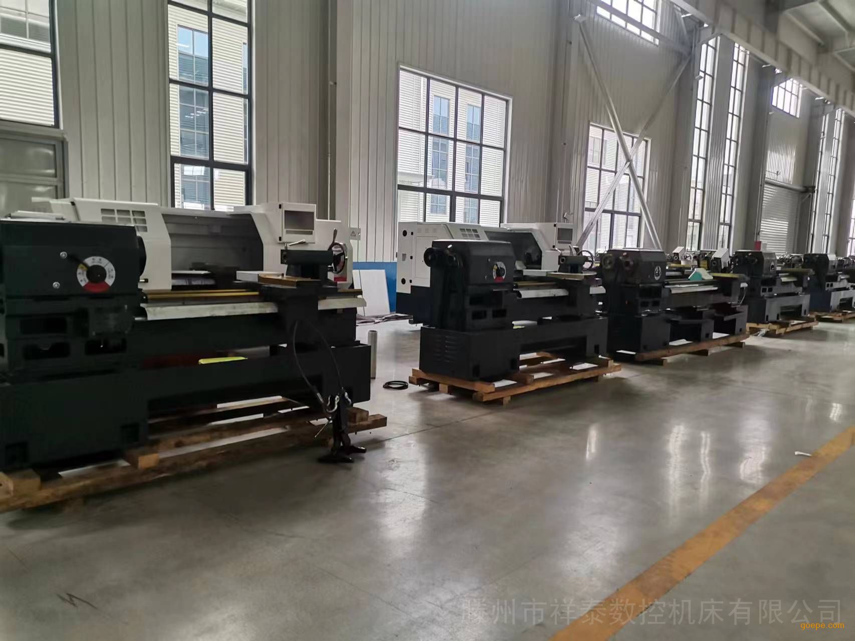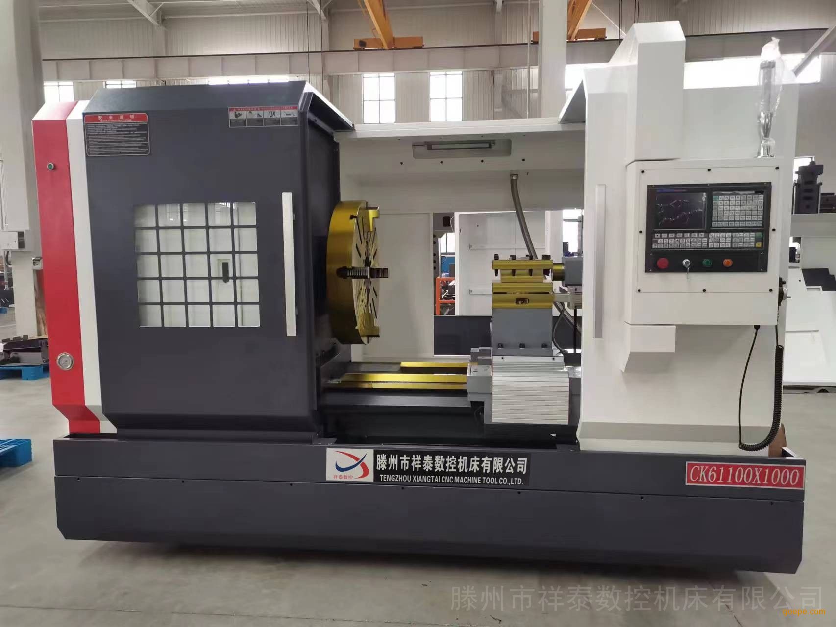 CK61100数控车床功率大,刚性强、主轴调速范围广,适用于强力或高速切割,可以车削端面、外圆、内孔以及公制、英制、模数、径节各种螺纹,并可承担钻孔、套料、镗孔等工艺。主轴的制动及正反转变向是液压控制,刹车灵敏。床头箱内用压力油强制润滑,主轴转速范围具有数种,供用户选择。床身导轨经表面淬火,以提高导轨的寿命。车床的手柄集中,使用方便灵活。